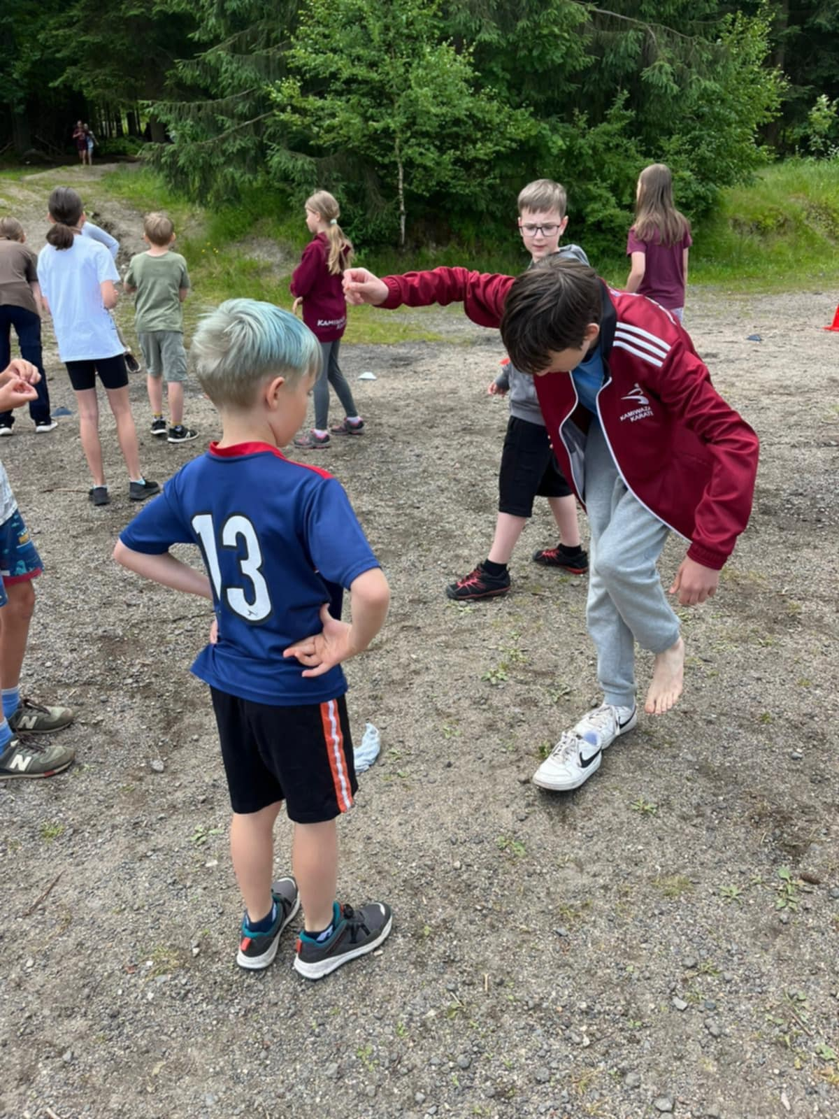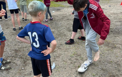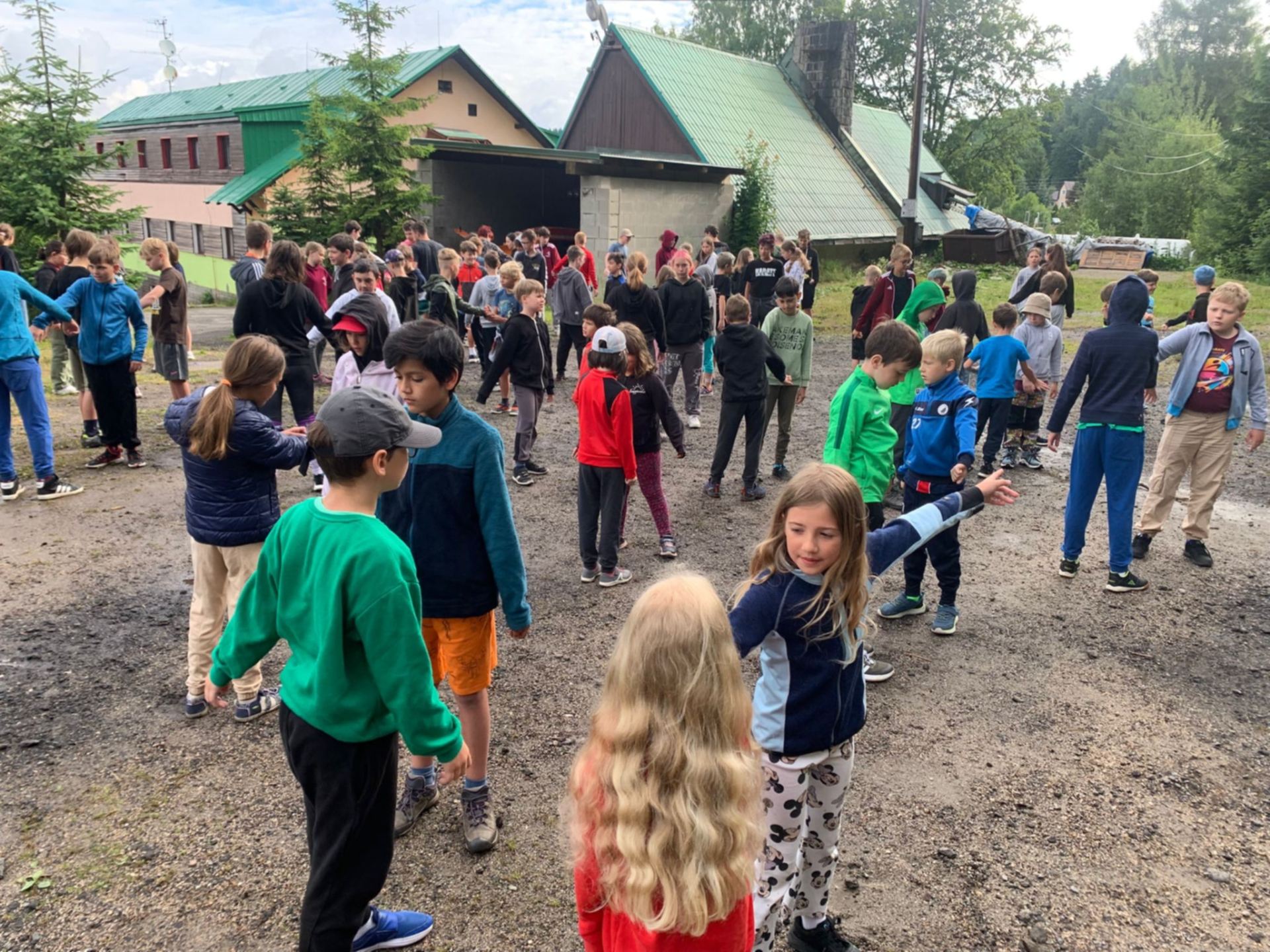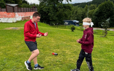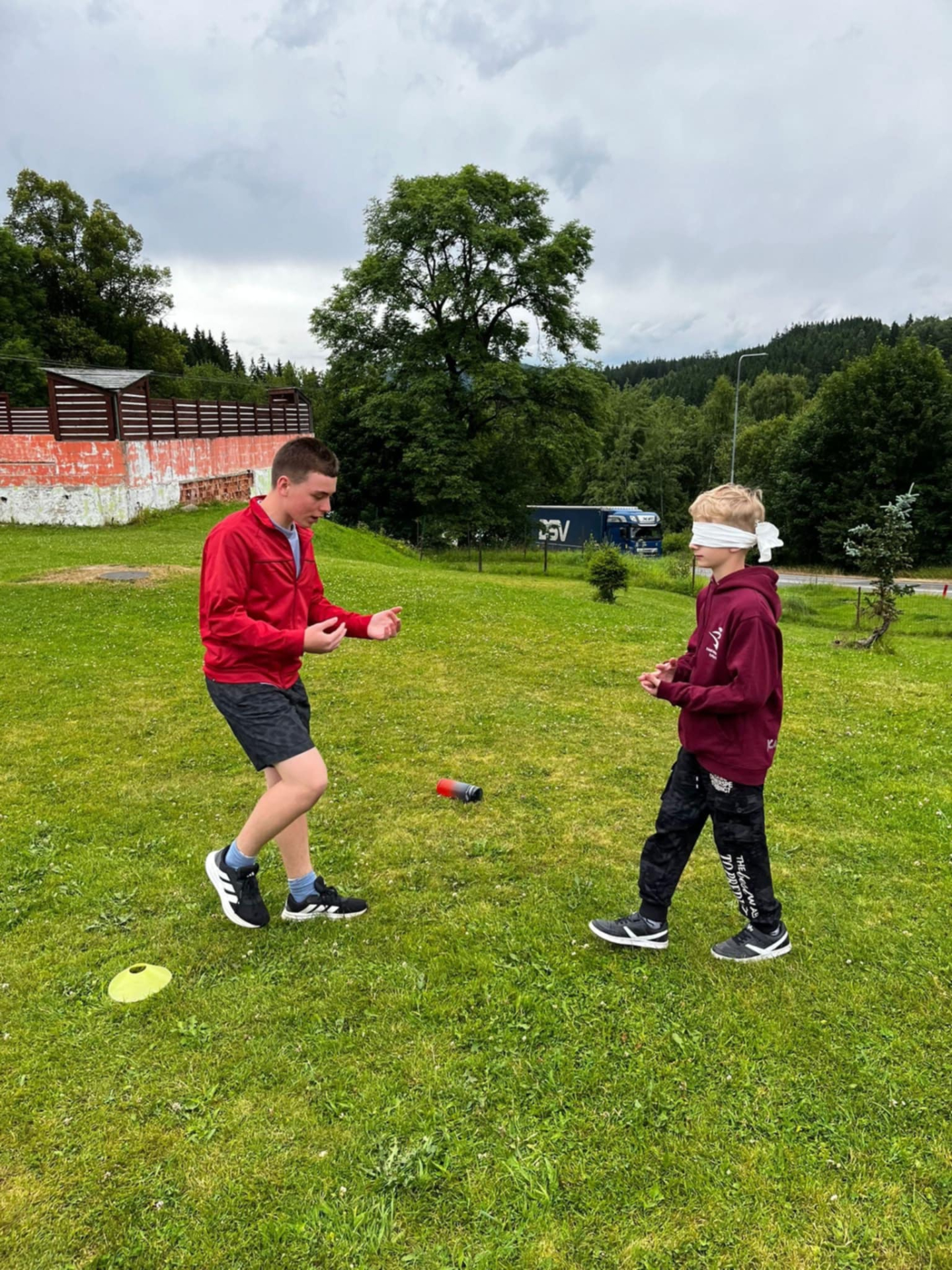 A druhá hra? To byla pecka! Zahráli jsme si na pašeráky a bandity – měli jsme vybudovat základnu a odtamtud propašovat bankovky přes hlídače. Tady nezáleželo na tom, jak jsi velkej nebo malej – rozhodovala chytrost, šikovnost a správná taktika. Fakt jsme si to užili!