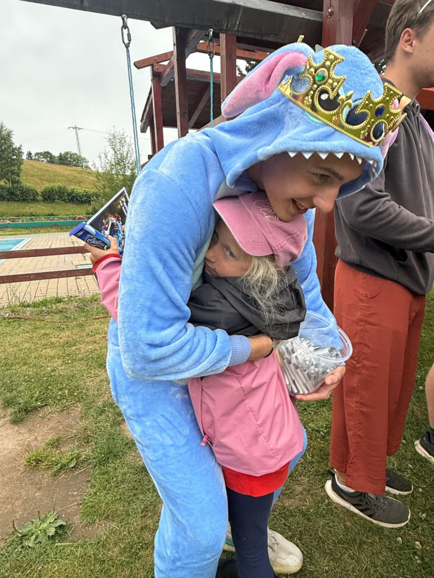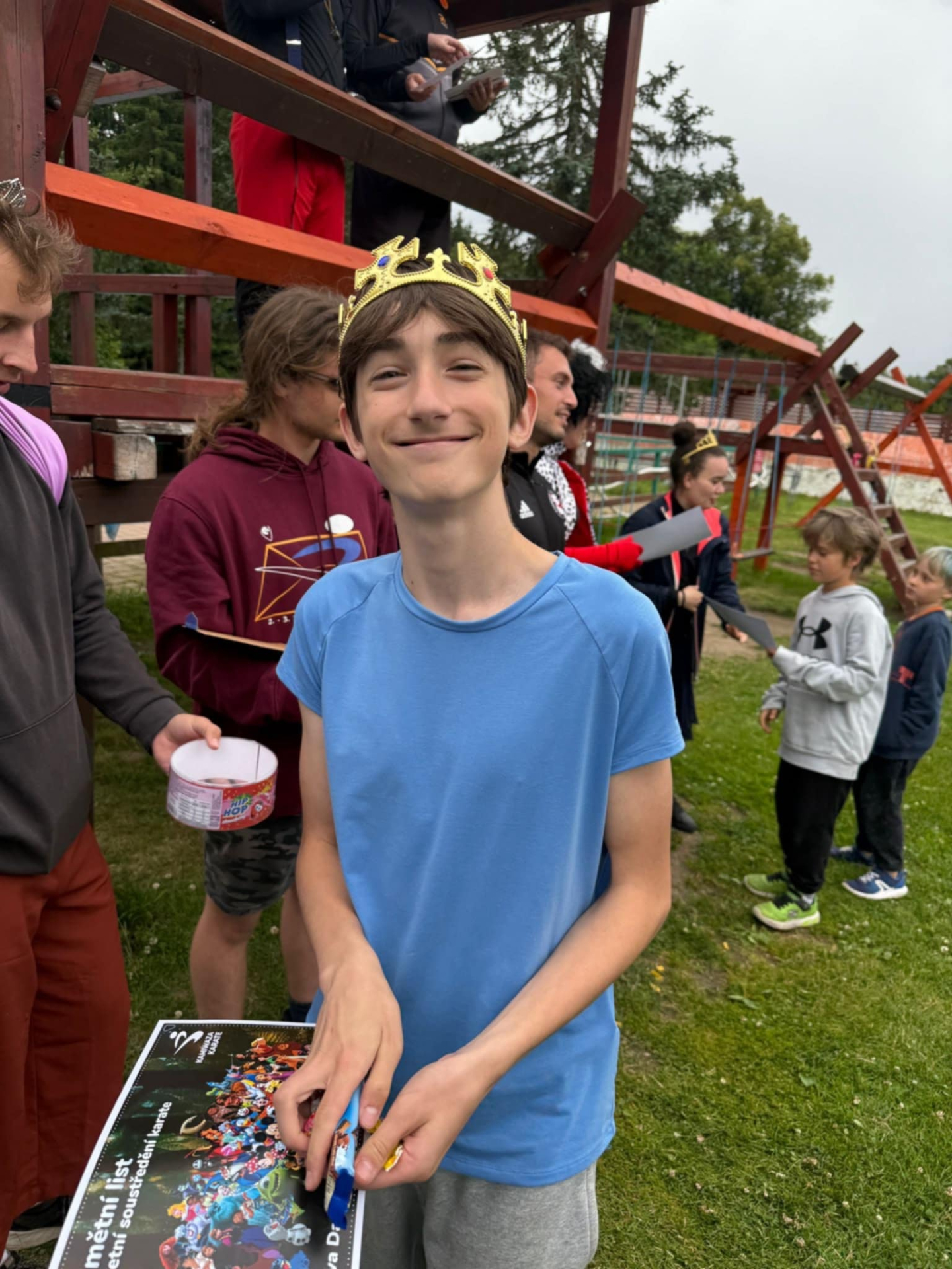 Takže žádný odpočinek – šli jsme do boje znovu! Čekala nás série stanovišť, kde jsme museli padouchy porazit pomocí rychlosti, síly, chytrosti i týmové spolupráce. Za každého poraženého padoucha jsme získali symbol, který patřil k tajemné truhle. A když se jednomu království podařilo posbírat všechny symboly, truhla se otevřela – a v ní byl sladký poklad pro všechny! Vítězný tým dostal korunu, ale radost jsme měli úplně všichni. Padouši byli chyceni, Cruella taky, a na závěr se nad hlavami rozzářil ohňostroj jako z Disneyho zámku. To byla tečka jak z pohádky!