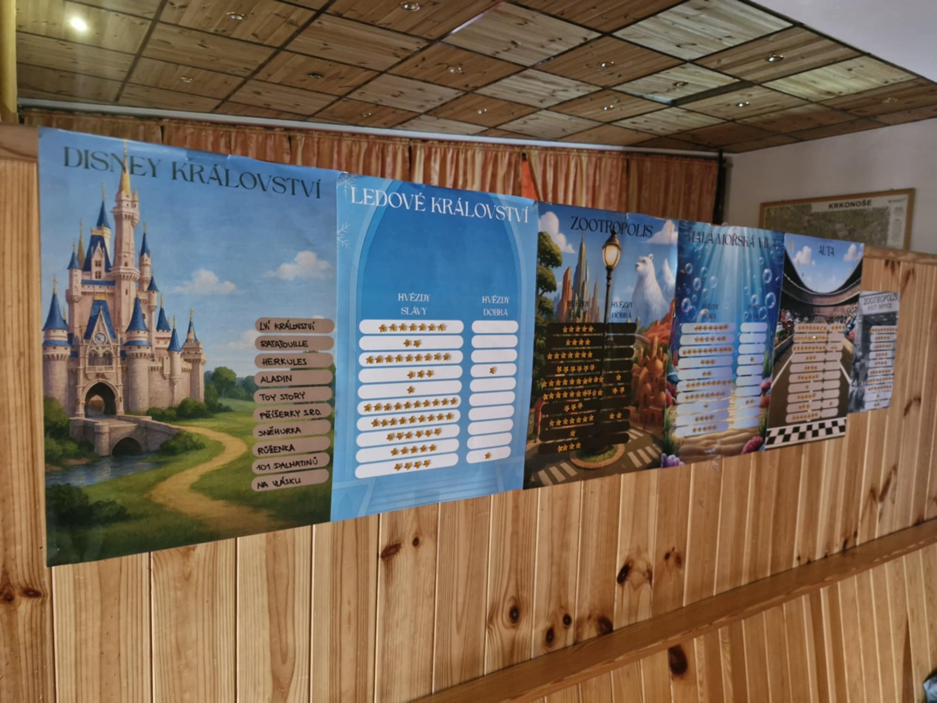 Dopoledne jsme bojovali o čest našich království. Na každém stanovišti se potkalo hned pět týmů – to byla atmosféra, jakou byste nezažili ani na mistrovství světa! Čekaly nás dvě úplně parádní hry. V té první jsme se přenesli přímo do světa filmu Auta a soutěžili jsme o Pistonův pohár. Bylo to jako lidská verze Člověče, nezlob se, ale mnohem napínavější. Museli jsme dobře plánovat a být rychlí jak Blesk McQueen!