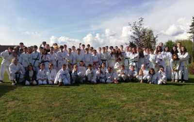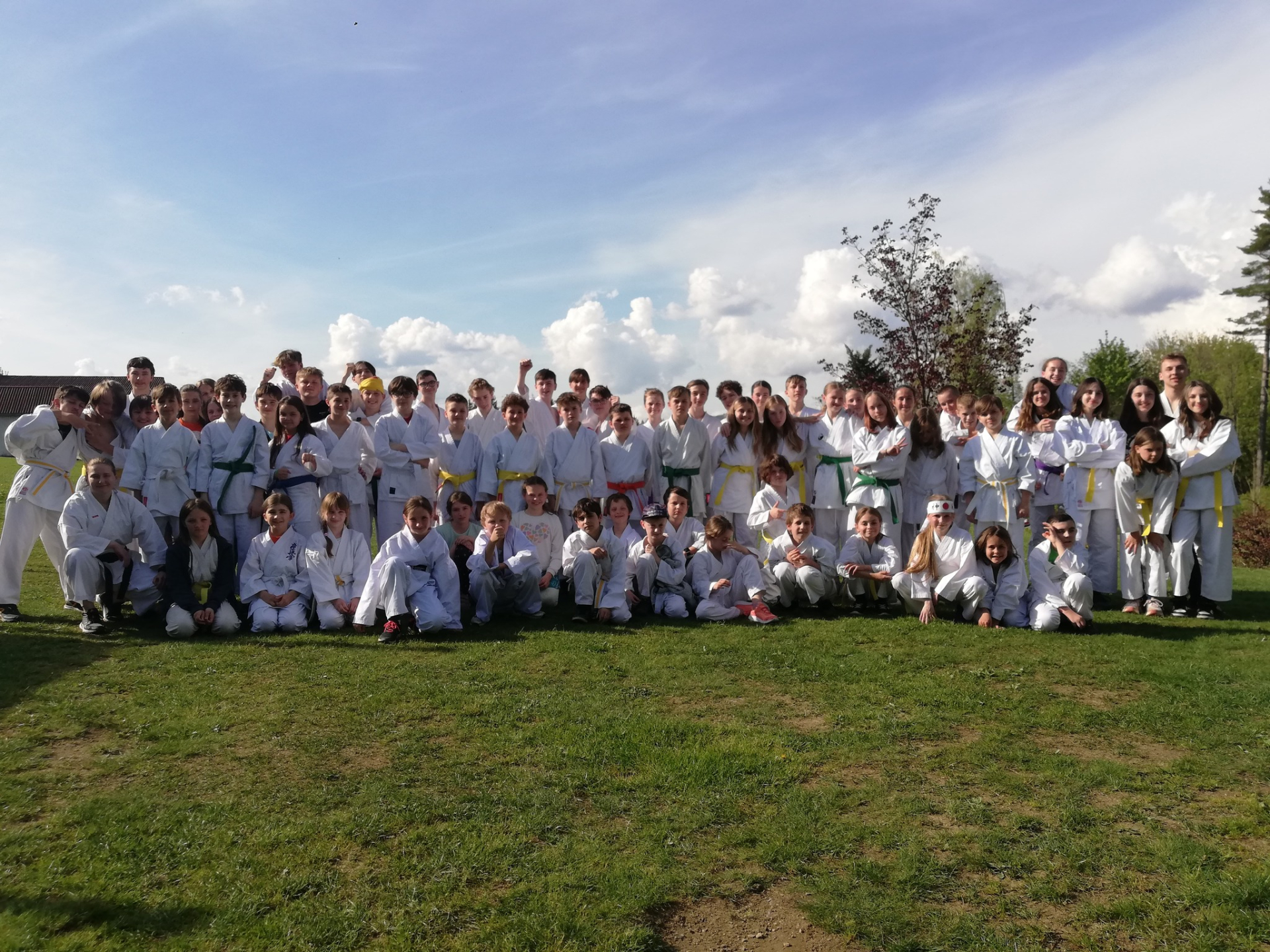 Pak jsme si vzali kimona, udělali fotku na památku a šli makat. Bylo krásně, a i když jsem měl trochu zelená kolena, trénink mě moc bavil.