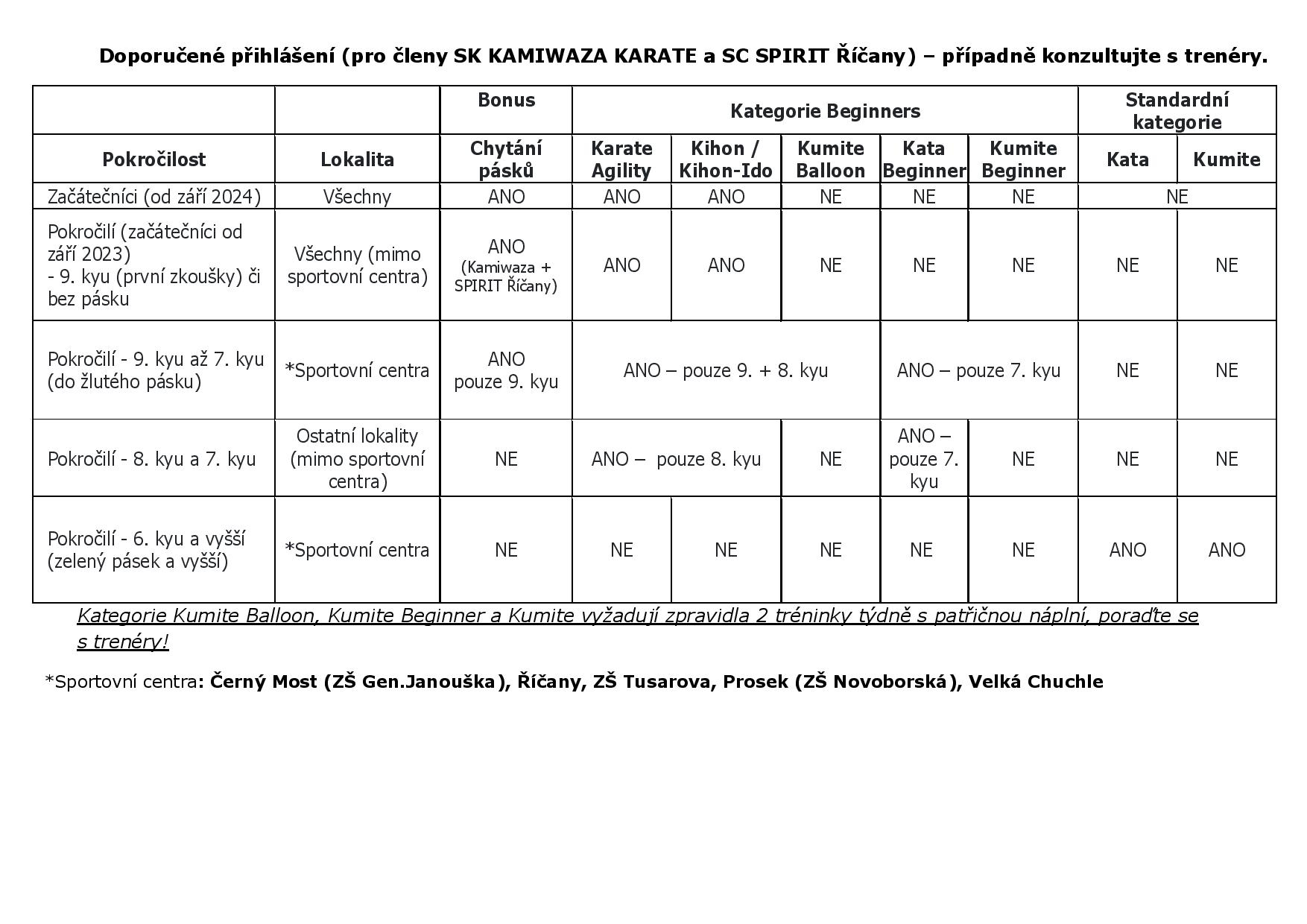 POKUD SI I PŘES DOPORUČENOU TABULKU KATEGORIÍ A MOŽNOSTI PŘIHLÁŠENÍ NEBUDETE VĚDĚT RADY DO JAKÉ KATEGORIE SVÉ DÍTĚ PŘIHLÁSIT, INFORMUJTE SE U SVÉHO TRENÉRA.